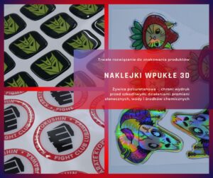 Z racji tego, iż posiadają one trójwymiarowy efekt, są znacznie lepiej widoczne i uznawane za atrakcyjne dla osób, które zapoznają się z przedstawianym komunikatem. Nowatorskie wypukłe naklejki 3D mają też bardzo wysoki poziom odporności na różne czynniki, takie jak woda, ścieranie czy promieniowanie ultrafioletowe. Stawiając na logotypy powstające z wykorzystaniem naklejek 3D ma się pewność, iż takie rozwiązanie będzie mogło posłużyć nam przez bardzo długi czas.